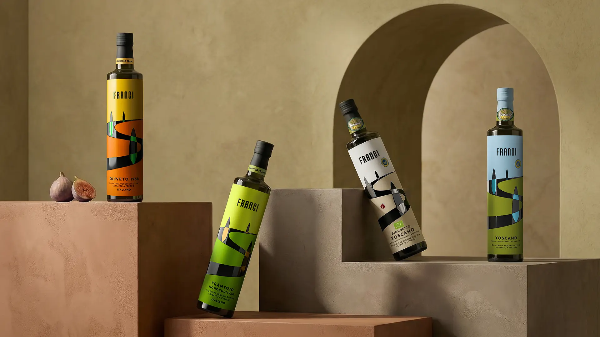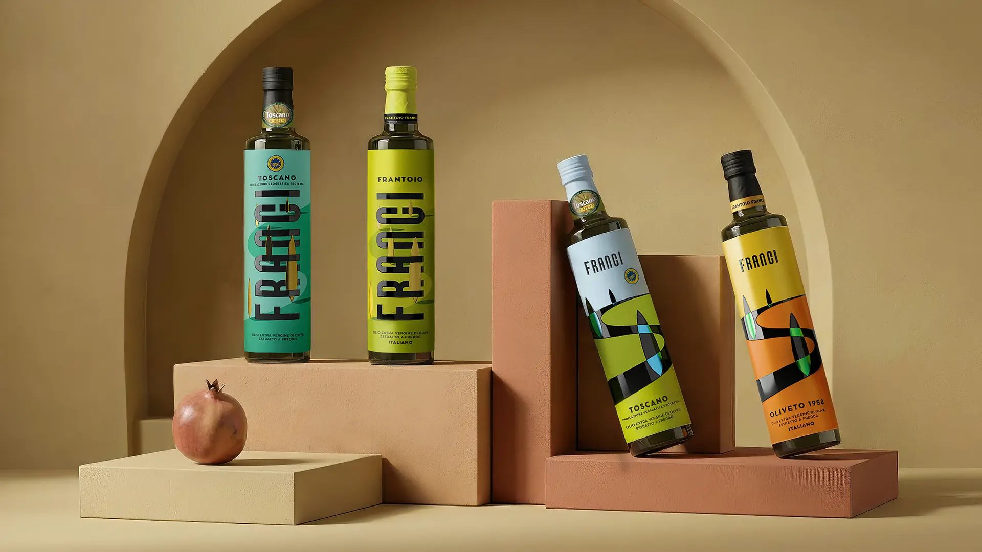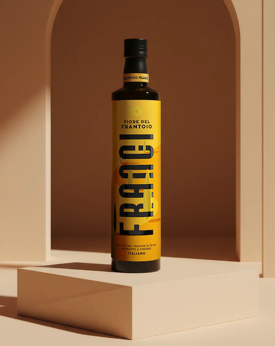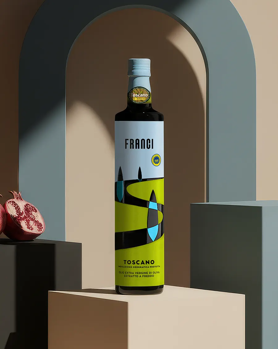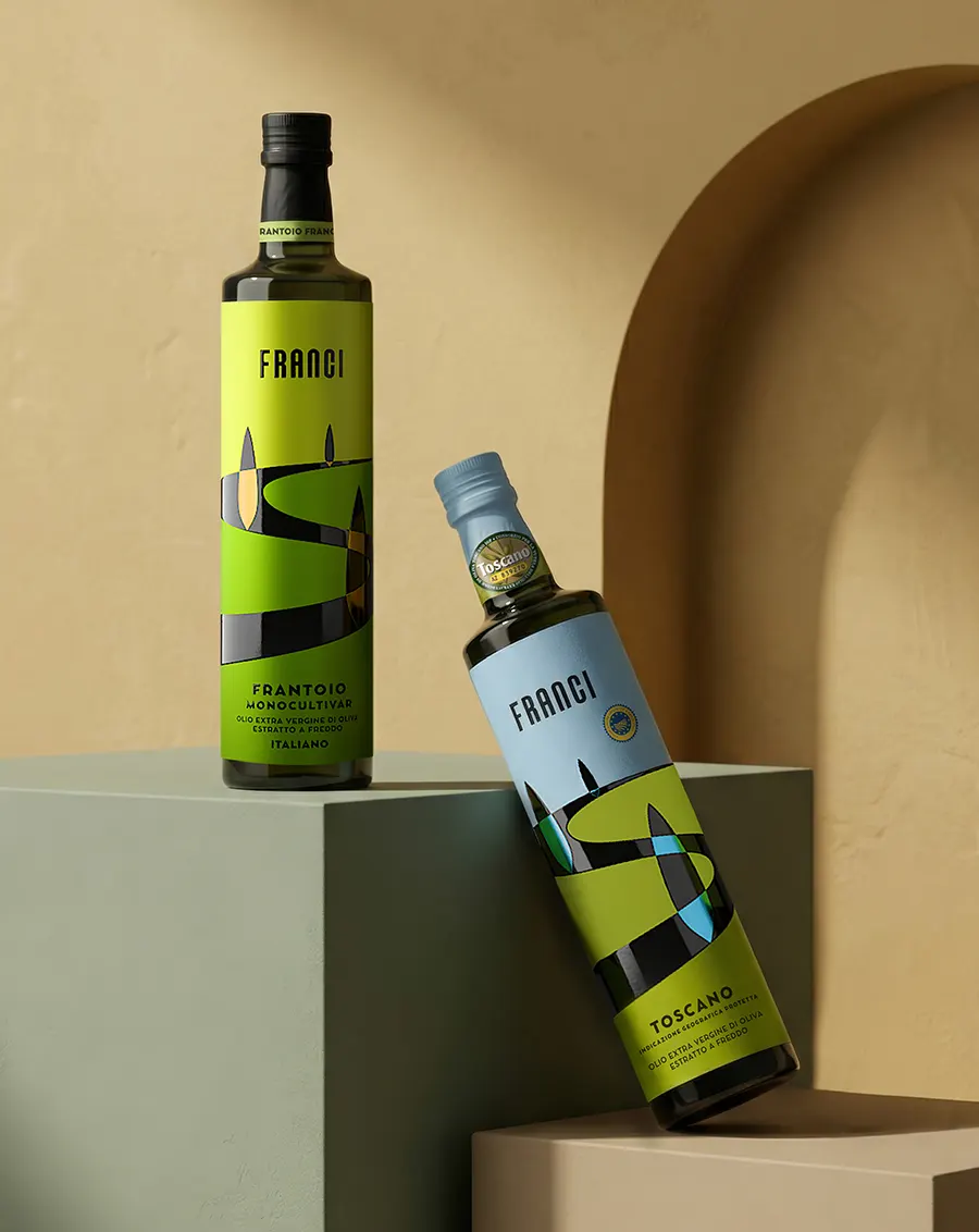 Il packaging Frantoio Franci traduce paesaggio, sostenibilità e qualità in un sistema visivo contemporaneo e riconoscibile.